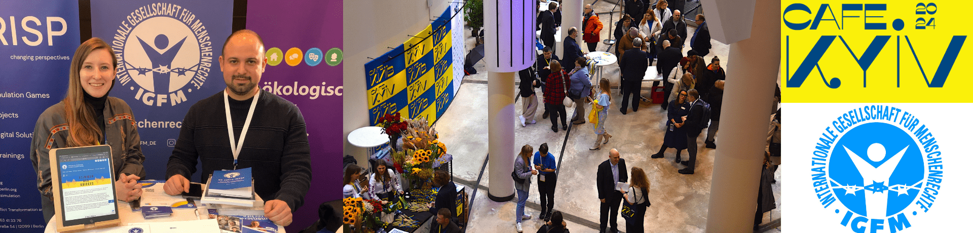 Im Cafe Kyiv war auch die Internationale Gesellschaft für Menschenrechte (IGFM) vertreten. Gemeinsam mit anderen ukrainischen und internationalen Organisationen informierten wir die Gäste über unsere Aktivitäten in der Ukraine, knüpften Kontakte zu Kollegen und tauschten Erfahrungen aus.
