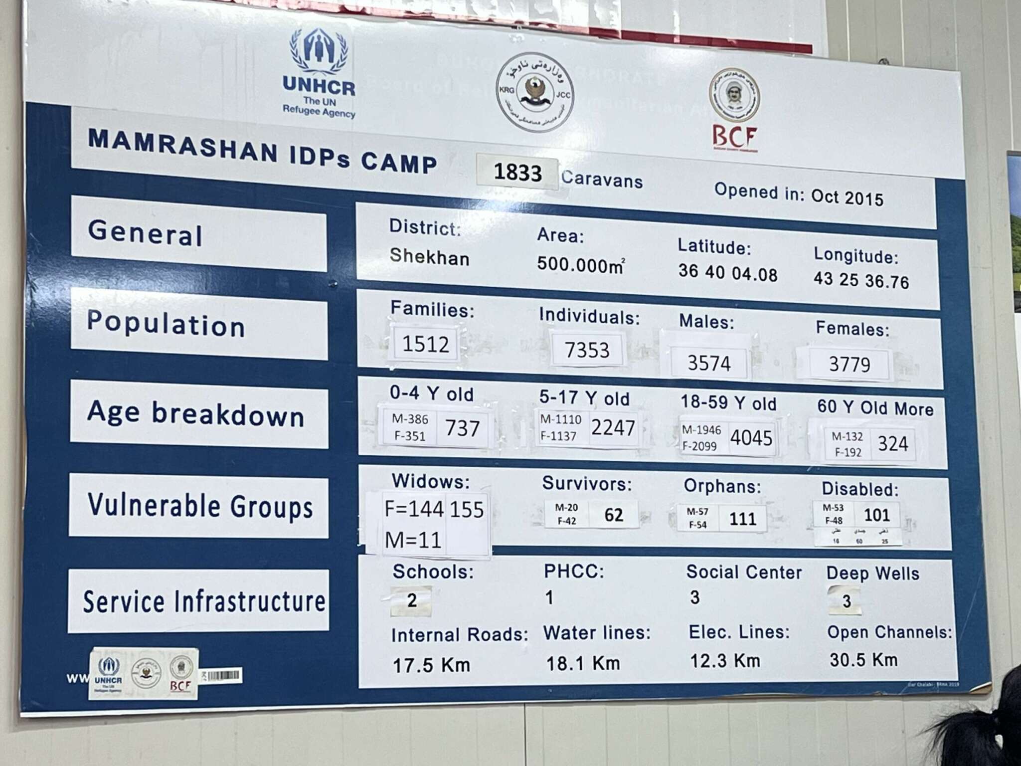Camp Akre beherbergt zurzeit 957 Personen. Unter den 224 geflüchteten Familien befinden sich über 150 syrische Familien.